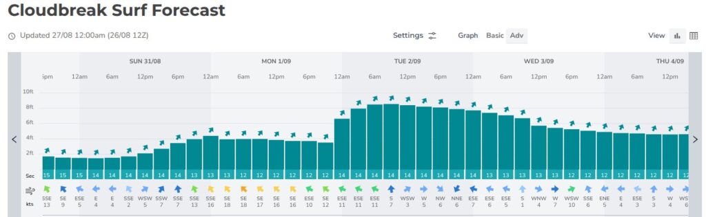 At six days out there’s no great need to lock onto size just yet, except to say we’re expecting sets in the 8ft ballpark. In the coming days we’ll begin sharpening that prediction.